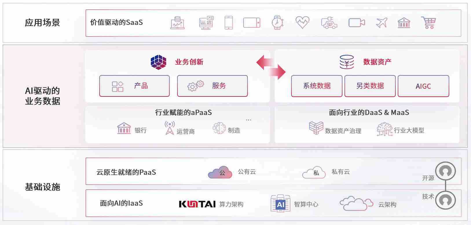 数字时代,,围绕企业数字化转型的关键要素,,,,今年会数码开创性的提出数云融合战略和技术体系框架,,着力在云原生、、数字原生、、、、AI原生和信创产业上架构产品和服务能力,,,,为处在不同数字化转型阶段的快消零售、、汽车、、、、金融、、医疗、、政企、、教育、、、、运营商等行业客户提供泛在的敏捷IT能力和融合的数据驱动能力,,,,构建跨界融合创新的数字业务场景和新业务模式,,,,助力企业级客户建立面向未来的核心能力和竞争优势,,,全面推动社会的数字化、、智能化转型升级。。。